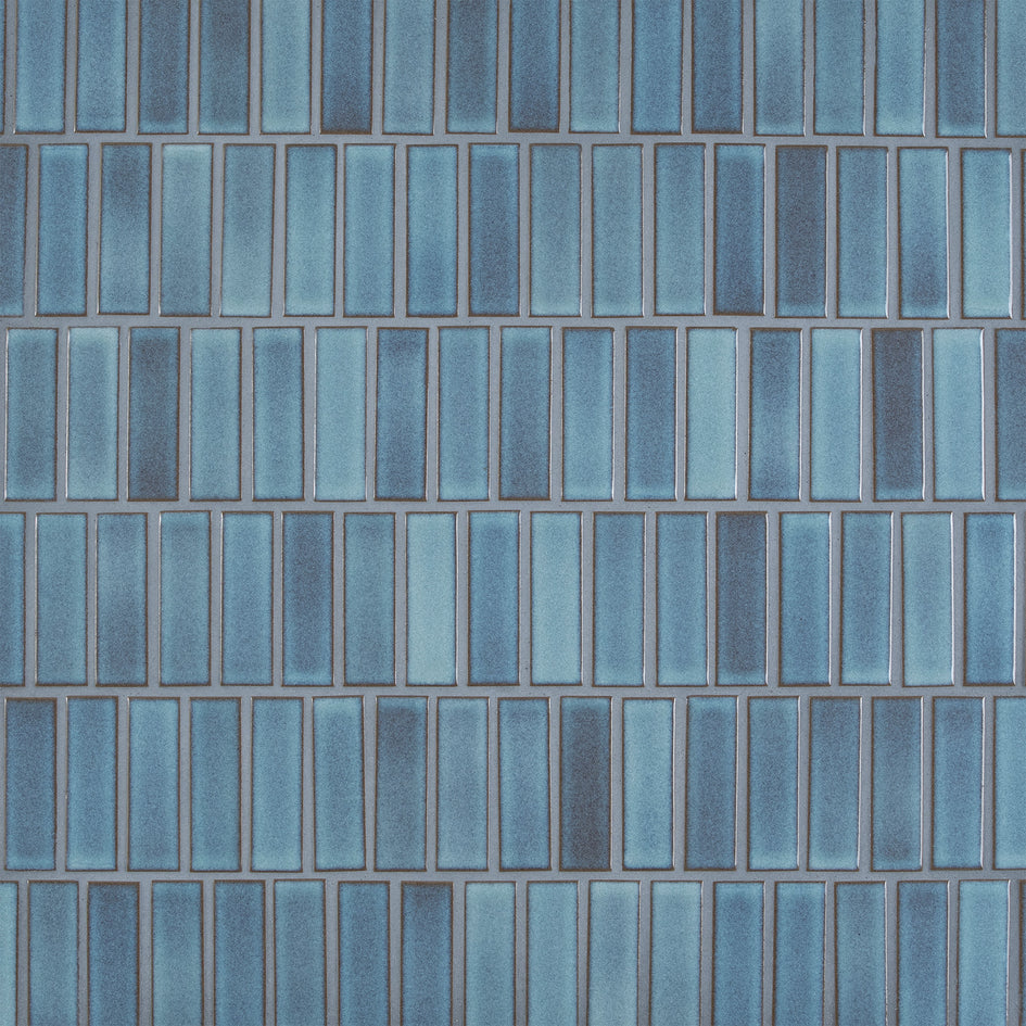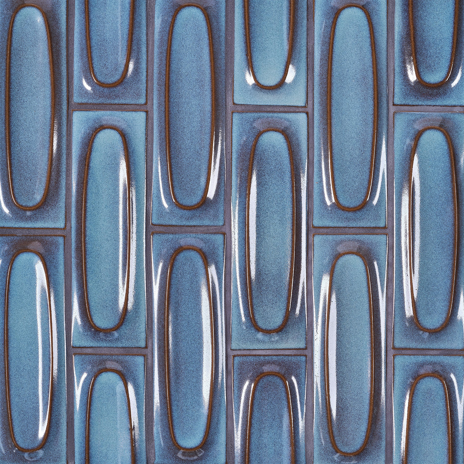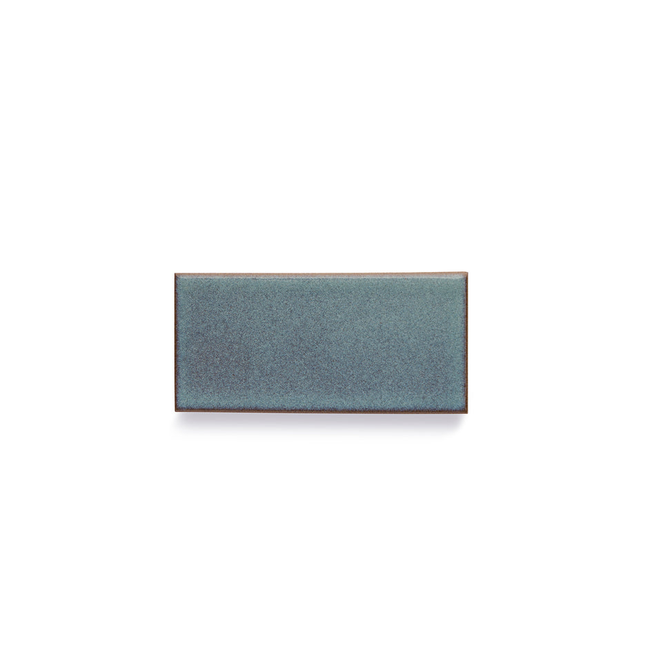 A moody blue with dark undertones from the glaze underneath. The surface finish is glossy with just a little bit of texture. This glaze will range in variation from very opaque to translucent, showcasing the earthy brown of the clay underneath. Sold Individually. Up to 6 tile samples may be ordered online. Glaze sample out of stock? Don't worry—all of our tile is made to order for every project.