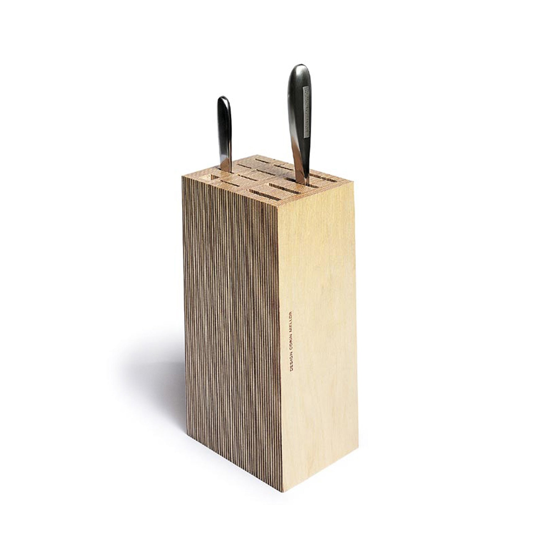 This sleek knife block is designed by Corin Mellor, the son of David Mellor and now the company creative director. Made of satin lacquered birch plywood, it includes sections for up to 11 knives and sharpening steel. An elegant and modern statement for any kitchen. Knives sold separately.