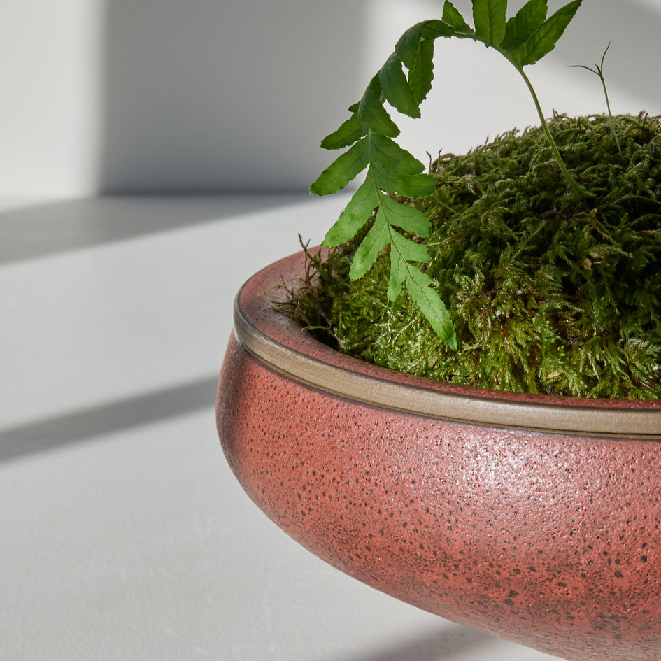 This piece was photographed with moss and ferns. If you select Curbside Pickup during checkout, your piece will be presented to you with a plant inside of it—either the one photographed or something similar. Curbside Pickup is available at our San Francisco, Los Angeles, and Sausalito locations. Orders marked to ship will not include a plant.