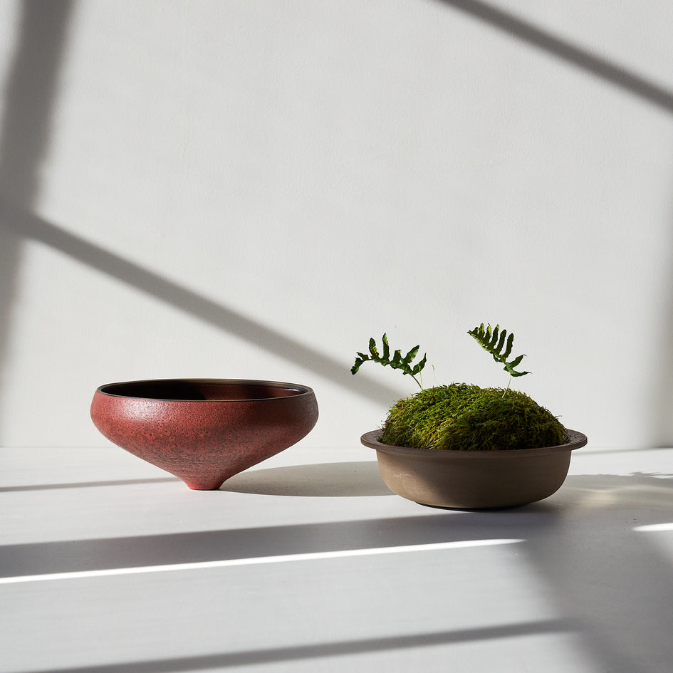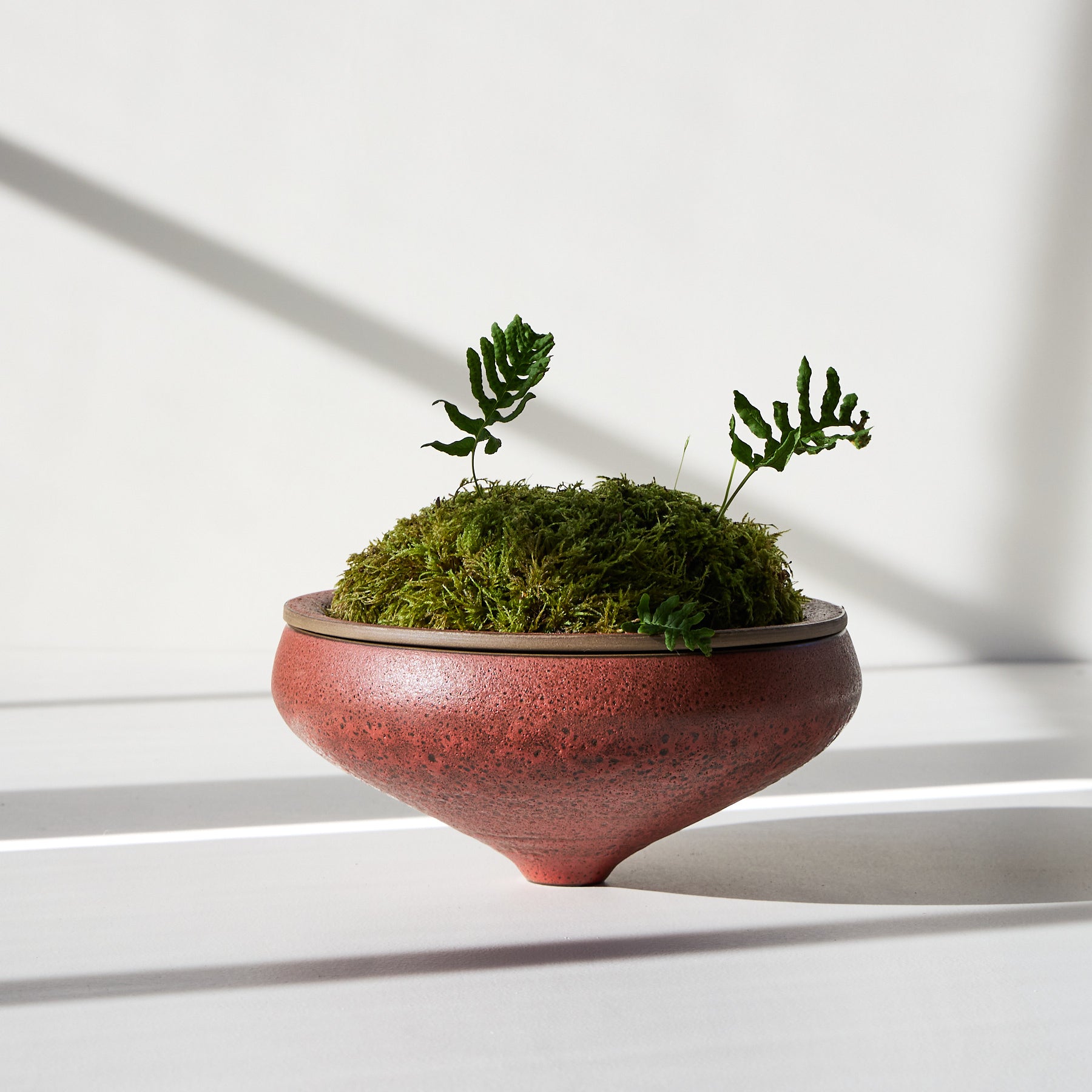 This form is about bringing the outside in. I wanted to contradict the typically heavy base, transforming it so that the planter appears lifted, as if floating on air. When I planted it for the first time, I thought of the simple principles of cooking: when you have amazing ingredients, you don’t need to manipulate them. Just a simple bowl of moss and ferns compliments the form. — Tung Chiang