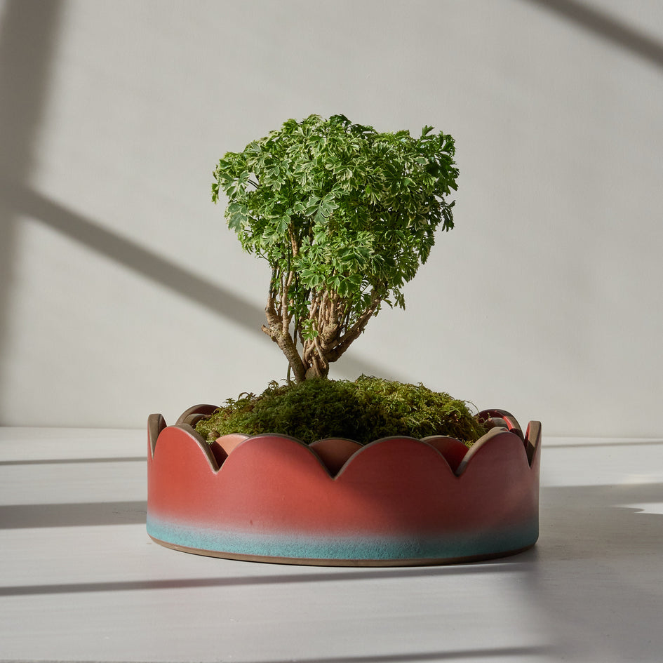 This piece was photographed with a Ming aralia plant and moss. If you select Curbside Pickup during checkout, your piece will be presented to you with a plant inside of it—either the one photographed or something similar. Curbside Pickup is available at our San Francisco, Los Angeles, and Sausalito locations. Orders marked to ship will not include a plant.