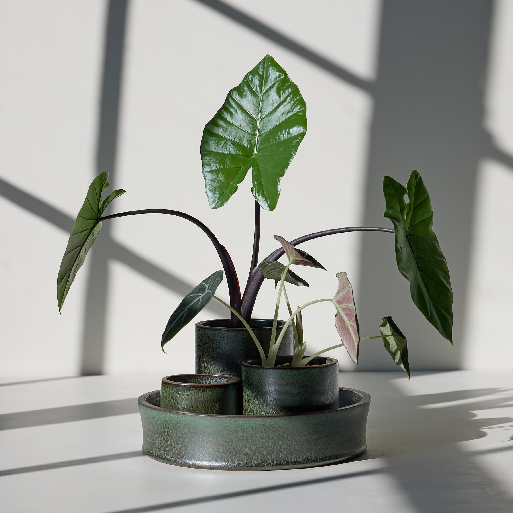 This piece was photographed with a Alocasia Black Stem plant. If you select Curbside Pickup during checkout, your piece will be presented to you with a plant inside of it—either the one photographed or something similar. Curbside Pickup is available at our San Francisco, Los Angeles, and Sausalito locations. Orders marked to ship will not include a plant.