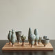 We now know that trees are connected not only in their roots but fungi also help them to share knowledge and information. Each piece represents a theme from past Design Series and are connected with the wooden base letting them share their root and knowledge. The assortment of pieces can be arranged in endless configurations. The wooden base is made from high quality plywood and crafted by my friend Maz. —Tung Chiang, Clay Studio Director