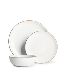 Clean, crisp and classic. Opaque White has been in continuous production since the 1950s. It's our brightest white giving you a beautiful glossy canvas to use on your table. The wiped edge reveals our darker manganese clay body highlighting the profiles of the pieces.