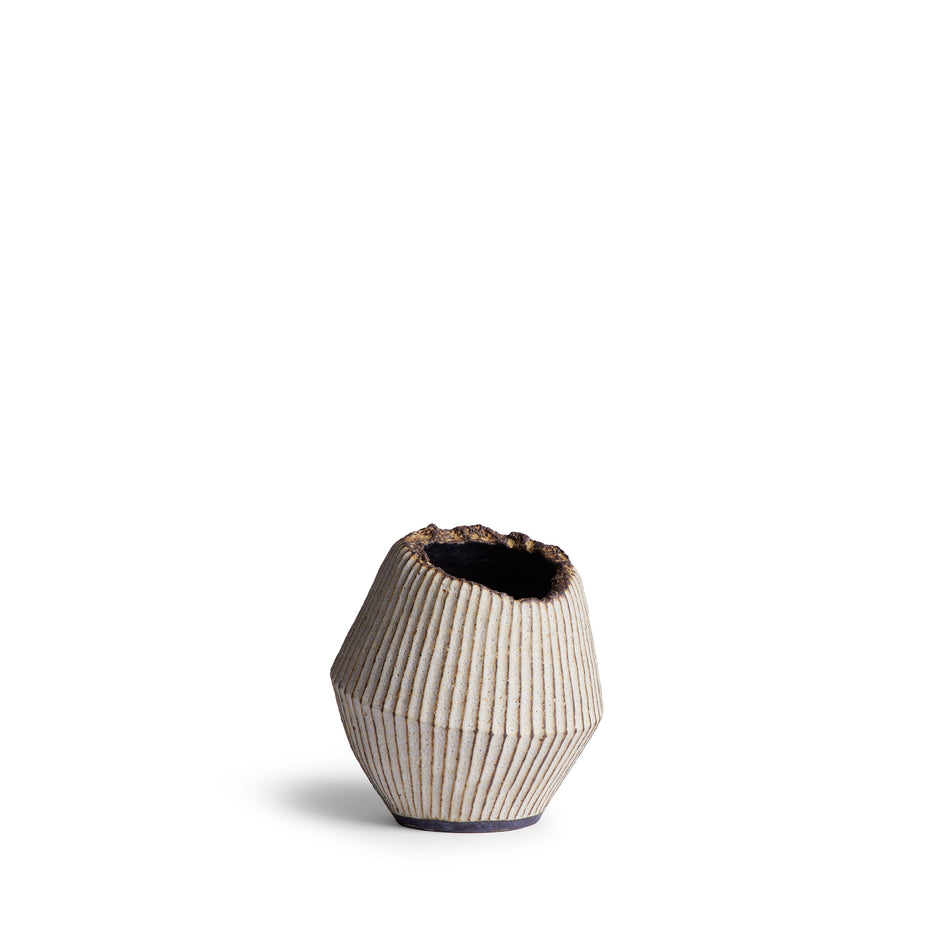 This year Akio set out to create new expressions through the beauty of imperfection. Drawing inspiration from Kakuzo Okakura, Akio says, "Okakura notes that imperfect objects invite us to use our imaginations—to 'complete' them in our mind’s eye. His ideas inspired me to think beyond symmetry and explore imbalance, which gave way to Imperfect Vessels. I hope you’ll enjoy it and let your imagination run wild!" This piece features his signature Pleated Work technique of carving grooves into the wet clay after it is thrown on the wheel. These grooves accentuate the profile of the vessel creating movement and rhythm. Akio finishes the vessel by applying different colored slips (liquid clay)—a technique he has refined over the last 30 years—to create richly varied surfaces that are a joy to see and touch.