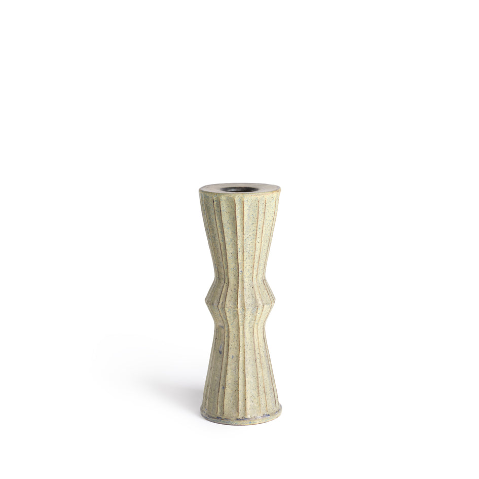 For Akio Nukaga throwing on the wheel is a technique close to his heart, one that he can always rely on. Each piece in this collection is an exploration in stacking architectural forms including spheres, cylinders, and cones in hopes of pushing expectations of what tableware can be. This piece features his signature “Pleated Work” technique of carving grooves into the wet clay after it is thrown on the wheel. These grooves accentuate the profile of the vessel creating movement and rhythm. Akio finishes the vessel by applying different colored slips (liquid clay)—a technique that he has refined over the last 30 years—to create richly varied surfaces that are complex to see and touch.