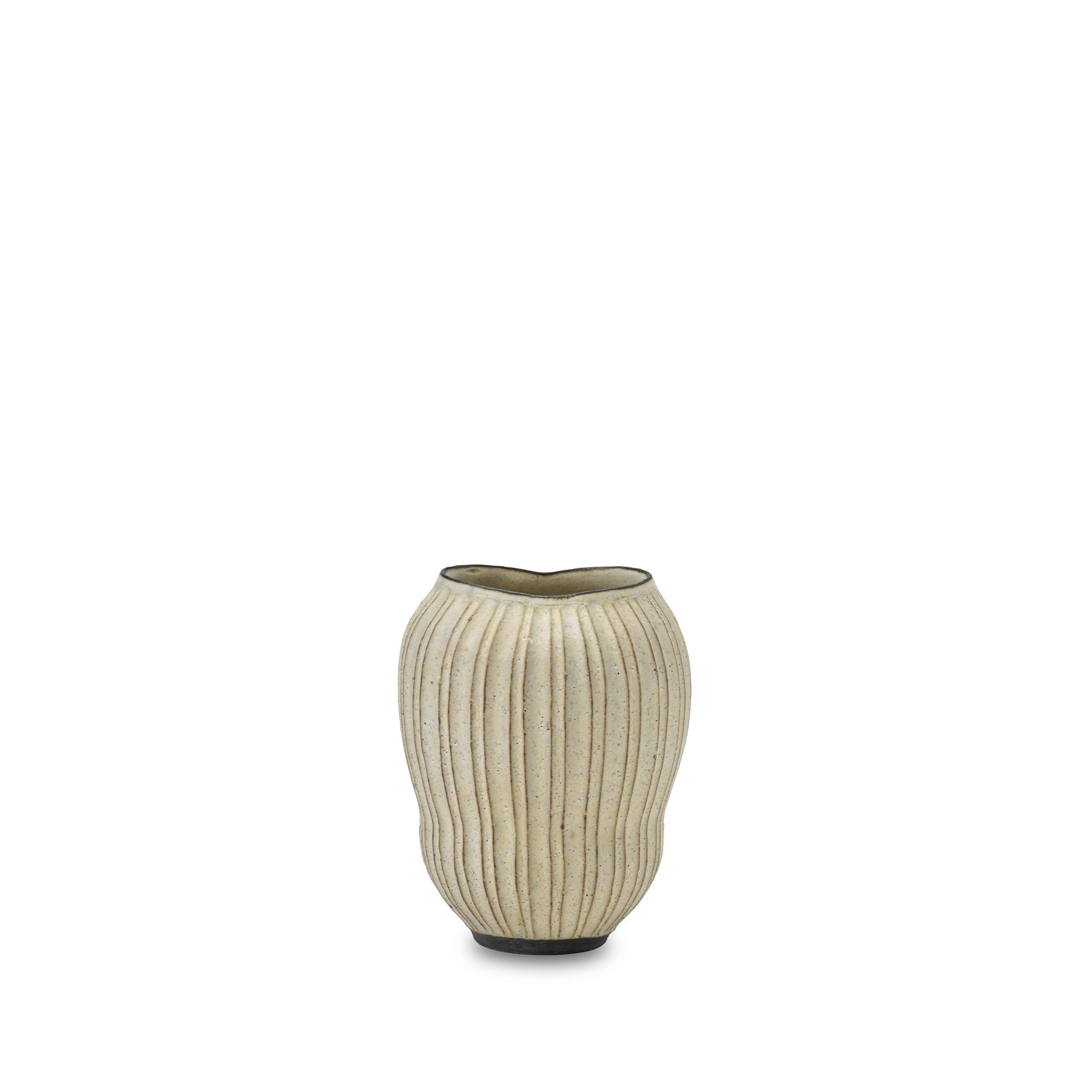 Akio Nukaga’s work explores the possibilities of how he leaves a trace of himself in clay. This piece features his signature “Pleated Work” technique of carving grooves into the wet clay after it is thrown on the wheel. The form—inspired by ancient earthenware—is accentuated by these grooves curving down the profile of the vessel creating movement and rhythm. After the first firing and before the second, he finishes the vessel by applying different colored slips (liquid clay)—a technique that he has refined over the last 30 years. This piece will go on sale as part of Group 2 on Wednesday July 27, 2022, at 12pm PDT.