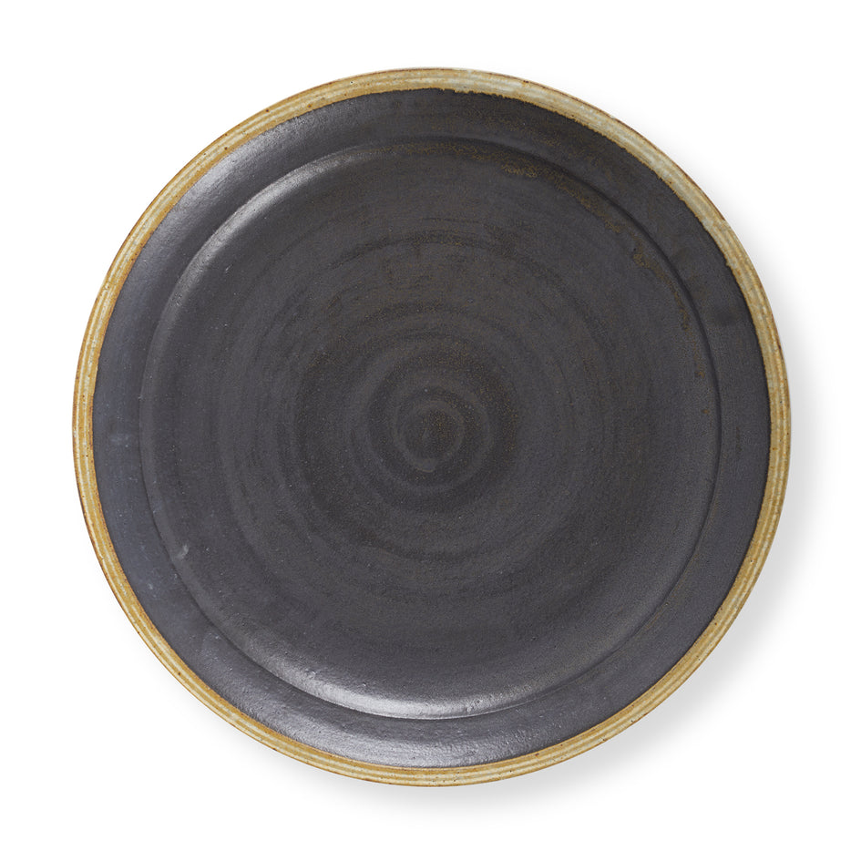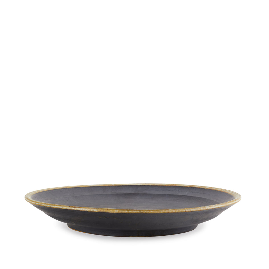 An elegant platter in a simple black glaze that is accented with a rim in contrasting white. Acclaimed Japanese potter Akio Nukaga crafts one-of-a-kind works of art for use in daily life. Modernist, with distinctly Japanese roots, the assured shapes and expressive surfaces are grounded with an earthy, rustic texture. Each one of Akio Nukaga’s signature pleated designs are thrown and carved by hand at his countryside studio in Kasama, Japan.