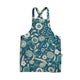 This apron has two patch pockets and is sewn in a no-tie, cross-back, pinafore style. The design is printed on a cotton basecloth that is durable and ages beautifully. The Flourish pattern features flowers and plantlife to complement the Summer Collection.