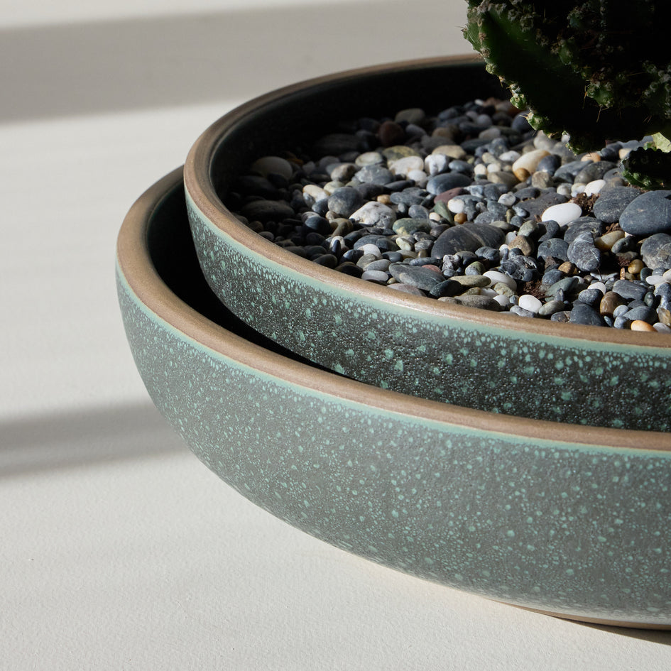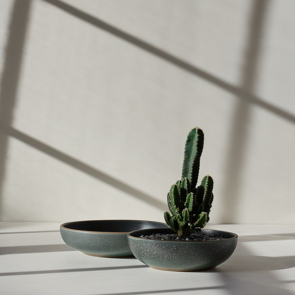 I love the low profile on traditional bonsai planters, which bring the root as close to the ground as possible. These two shallow bowls nest within each other, with a pair of interior holes that can be used to secure the root. The extended edge on the inner planter makes it easy to lift and remove when it’s time to release water from the saucer. — Tung Chiang
