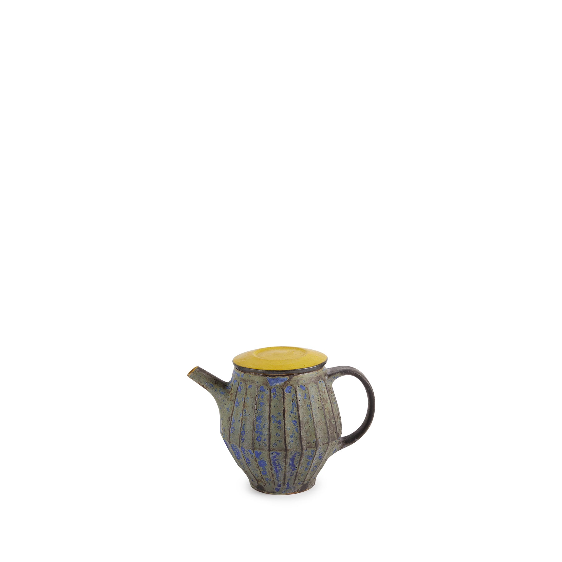 A charming teapot with a bright yellow lid. Acclaimed Japanese potter Akio Nukaga crafts one-of-a-kind works of art for use in daily life. Modernist, with distinctly Japanese roots, the assured shapes and expressive surfaces are grounded with an earthy, rustic texture. Each one of Akio Nukaga’s signature pleated designs are thrown and carved by hand at his countryside studio in Kasama, Japan.