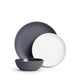 Dramatic tones balanced with clean contrasts. Some pieces on our deep, dark blue Night Sky/Indigo glaze have tiny white flecks, offering depth, variation, and gloss to other place settings.