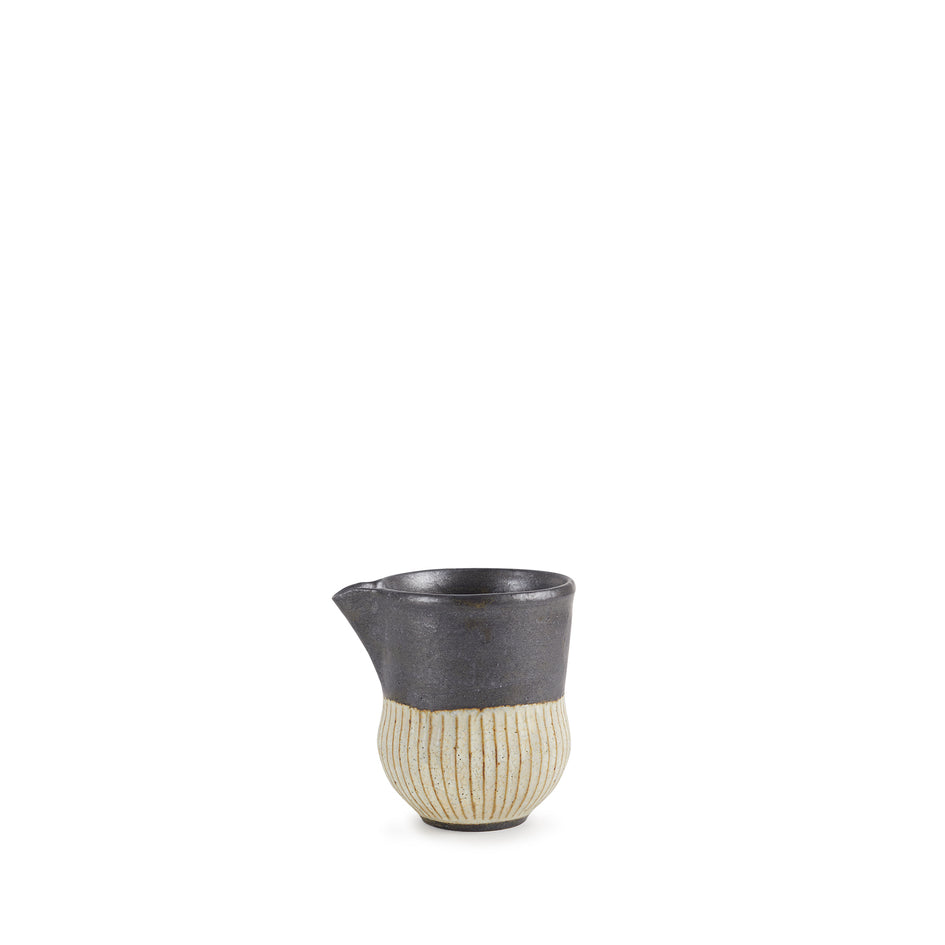 A useful pitcher with bold black surface over a hand-carved pleats. Acclaimed Japanese potter Akio Nukaga crafts one-of-a-kind works of art for use in daily life. Modernist, with distinctly Japanese roots, the assured shapes and expressive surfaces are grounded with an earthy, rustic texture. Each one of Akio Nukaga’s signature pleated designs are thrown and carved by hand at his countryside studio in Kasama, Japan.
