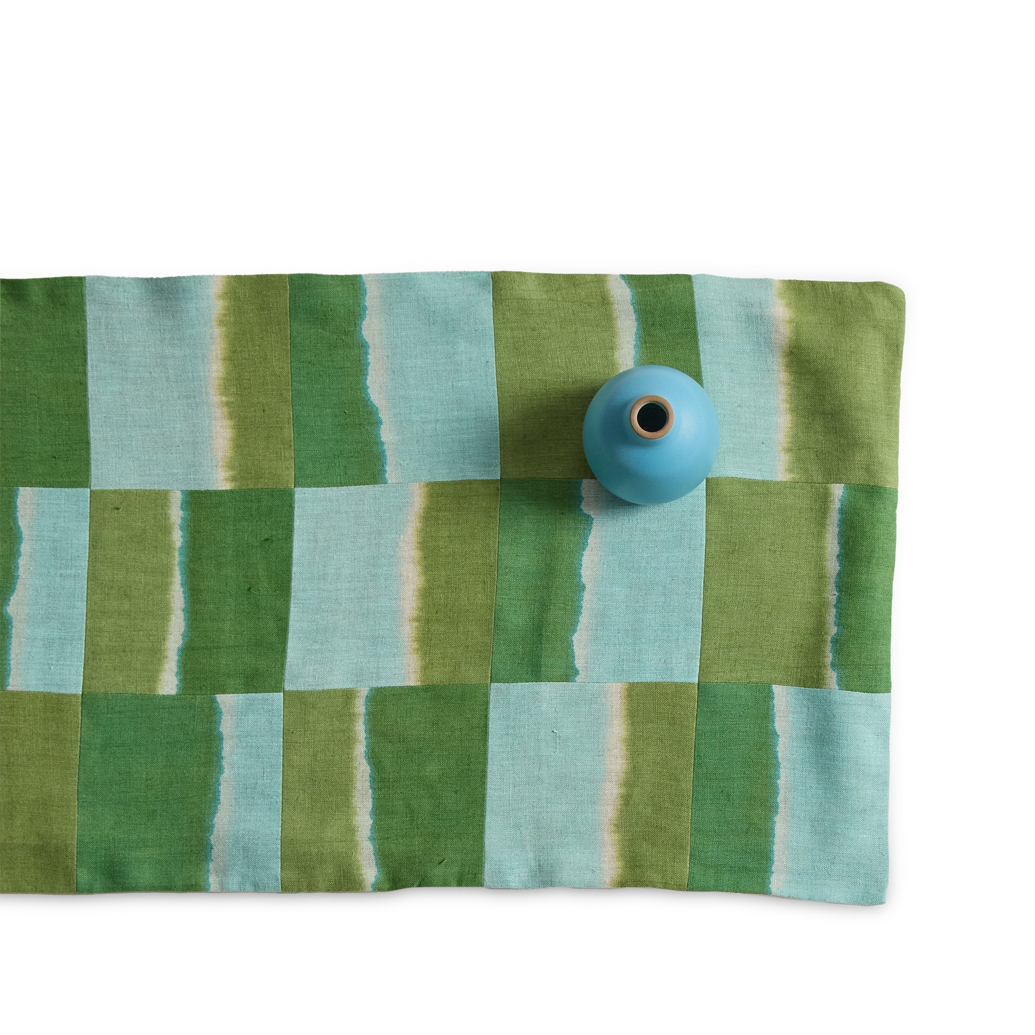 Each runner is sewn from hand-painted panels and varies in organic ways adding subtle texture to the simple design. The hand of the fabric is light and durable enough to use for every meal. Made exclusively for Heath as part of the Summer Collection.